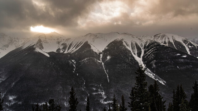 Banff, Canada - Dec. 21 2021: Panorama view from  the Sulfur Mountain Trail in Banff Alberta