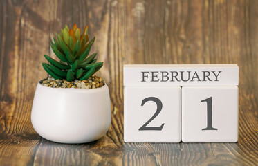 cube calendar for february on wooden background