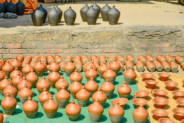 ネパールカトマンズ郊外に位置するバクタプル市内にある陶器市場の風景Scenery of the pottery market in Bhaktapur city located on the outskirts of Kathmandu, Nepal