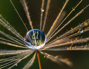 Macro shot of spiderweb with dewdrops captured on May 21