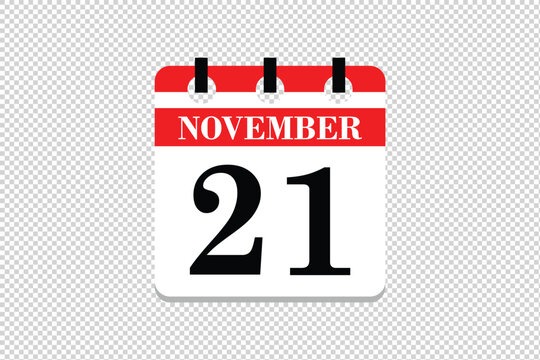 Illustration of paper calendar with date 21 November. Day and month for birthday, anniversary or appointment