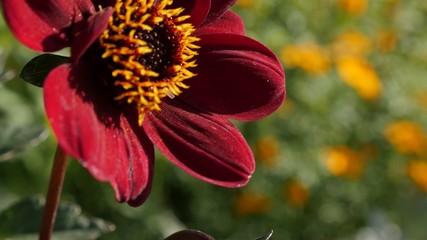 Dahlia peony deep red flower in the garden 4K 2160p UltraHD tilt footage - Dahlia Bishop of Auckland plant shallow DOF 4K 3840X2160 UHD tilting video