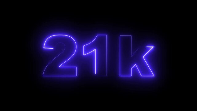 Neon line 21k Ultra HD icon isolated on black background, 10K followers. animation in Easy to put into any video, 4k motion video...