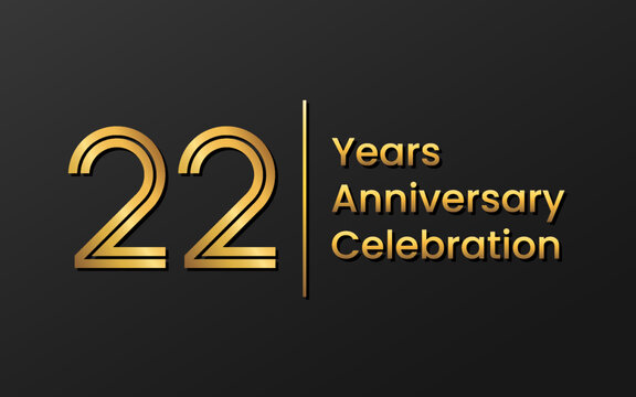 22 Years Anniversary, Perfect template design for anniversary celebration with gold color for booklet, leaflet, magazine, brochure poster, web, invitation or greeting card. Vector template