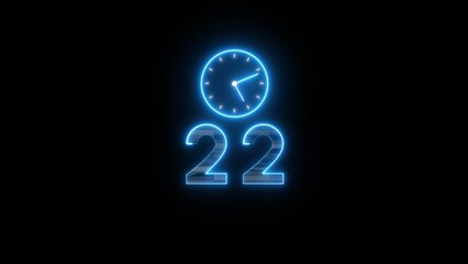 Neon countdown clock illustration. Time 22 days to go symbol.