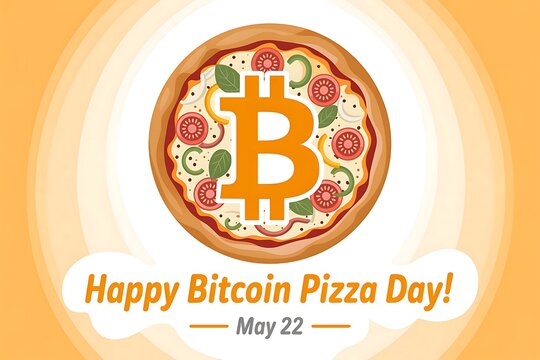 Celebrate Bitcoin Pizza Day Delicious Pizza with Bitcoin Symbol May 22nd Enjoy this special day commemorating the first