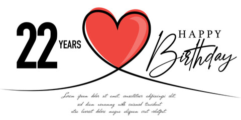Minimalist 3D Happy 22nd Birthday Background With Balloons , Hearts, Confetti And Candles, Happy Birthday Background