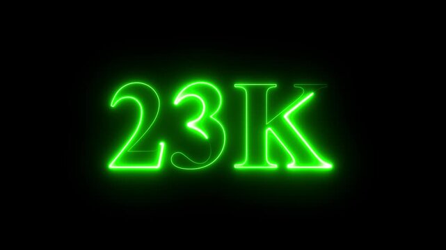 23k text font with neon effect,23k followers, Thank You, social media post. Thank you followers congratulation card. Achievement in 23K followers Congratulating networking thanks.