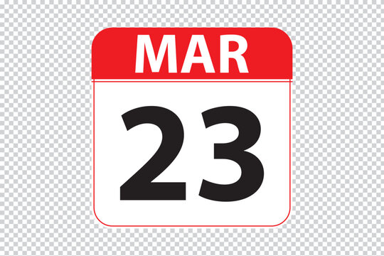 March 23 dates calendar icon.  simple and modern calendar icon on white background.