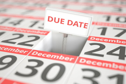 DUE DATE sign on December 23 in a calendar, 3d rendering