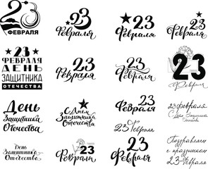 Set of 23 February card. Translation 23 February. The Day of Defender of the Fatherland.