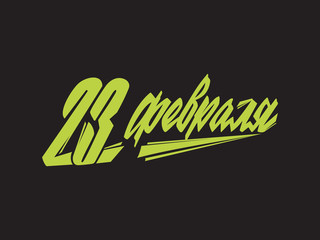 February 23-holiday in Russia. February 23 handwritten lettering, typography vector design for greeting cards and poster. Russian translation: February 23, Happy Defender Of The Fatherland Day.