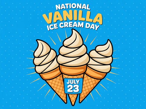 Three vanilla ice cream cones celebrate national vanilla ice cream day on july 23