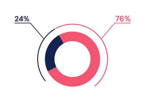 Circular infographic showing 24 percent and 76 percent with pink and navy segments circle percentage