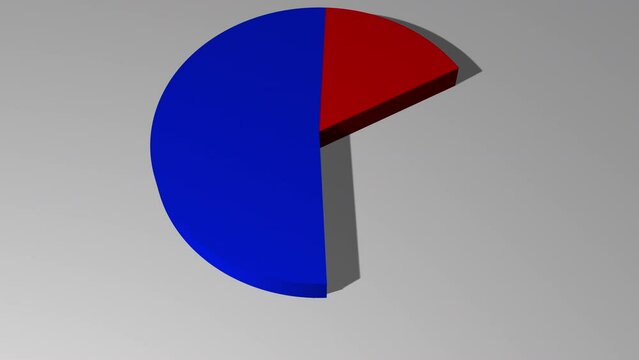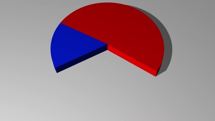 3d animated pie chart with 76 percent red and 24 percent blue including luma matte