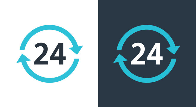 24 hour service icon. 24 hours icon. 24 hours order execution or delivery service icon. 24 hours icon flat style on a white background.