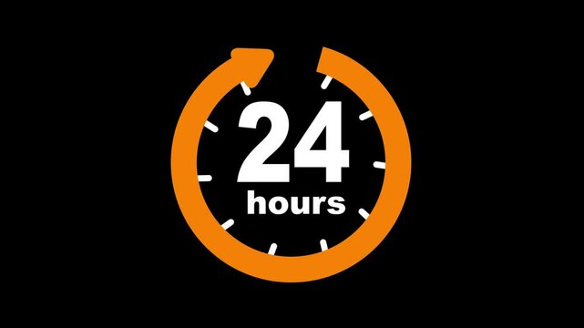 Clock 24 hours icon, isolated on transparent background with alpha channel Clock , timer time passage waiting time animation (4K) , 24 hours