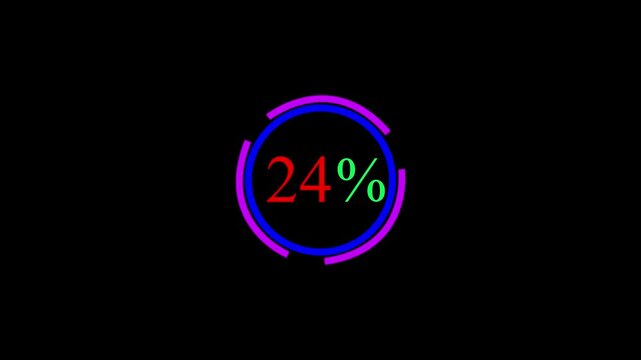Neon 24 Percent Progress Indicator with Red and Blue Glowing Numbers on Black Background, Digital Countdown UI