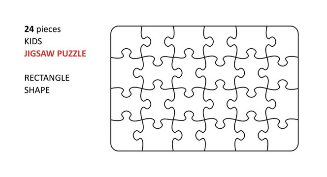 Puzzle template with 24 pieces. Jigsaw outline grid. Thinking game with separate shapes. Simple mosaic layout. Modern puzzle background. Laser cut frame. Vector illustration.