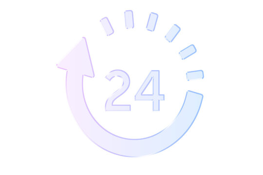 Illustration of a 24hour service icon isolated on transparent background, depicting roundtheclock availability and support for customers and clients