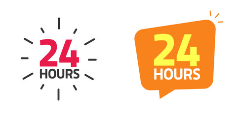24 hour icon vector or 24hrs open service working time label badge modern trendy design banner image