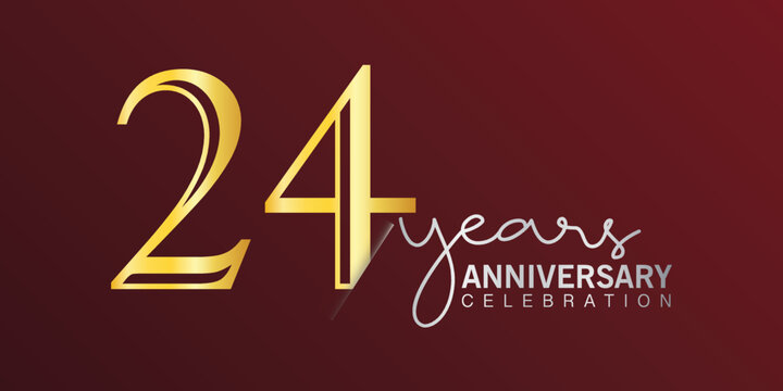 24th anniversary celebration logotype number gold color with red color background. vector anniversary for celebration, invitation card, and greeting card
