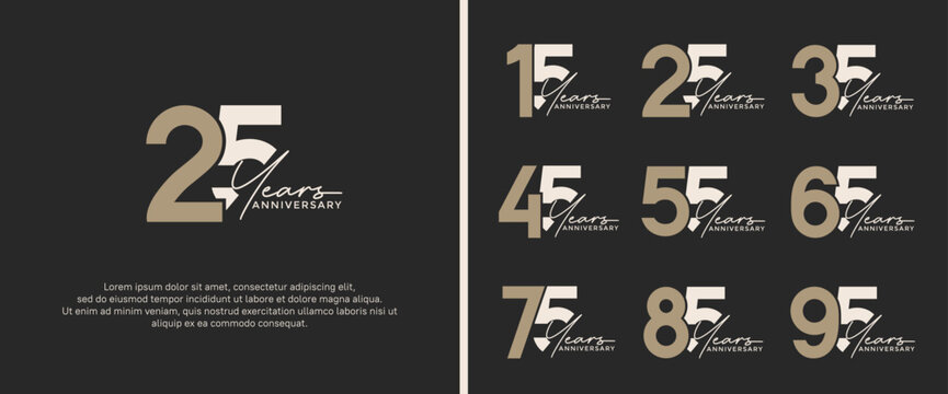 set of anniversary logo brown and gray color on black background for celebration moment