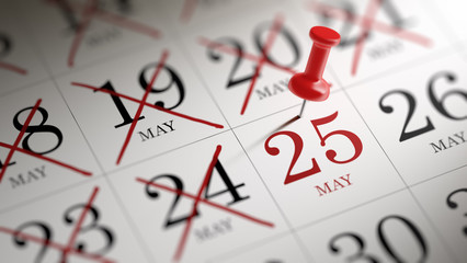 may 25 calendar reminder. 25th may daily calendar icon template. Vector illustration
