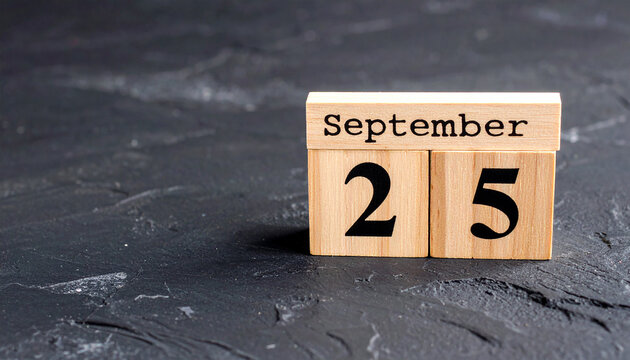 Wooden cubes with text SEPTEMBER 25. Date, schedule or reminder. Minimalistic calendar design