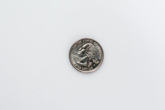 An aged or used Quarter Dollar at 2:1 Magnification, and on a white background.