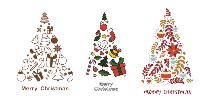 Pack of Christmas Trees for cards, posters and banners. Vector illustration