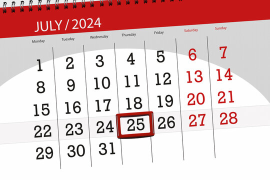 Calendar 2024, deadline, day, month, page, organizer, date, July, thursday, number 25
