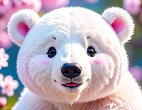 Up Close Portrait of Pink and White Stuffed Giant Toy Polar Bear 253