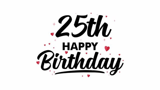 4K 25th Happy Birthday text animation on white background, animation love happy birthday