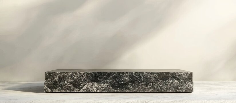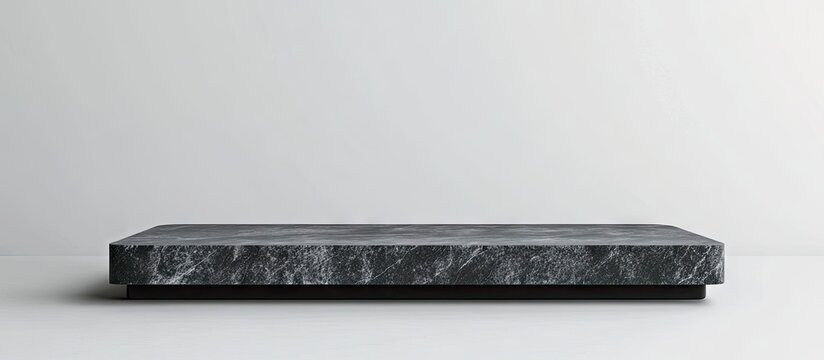 Granite podium with a sleek black frame positioned centrally against a soft white background ideal for luxury product display measuring 25x11 inches