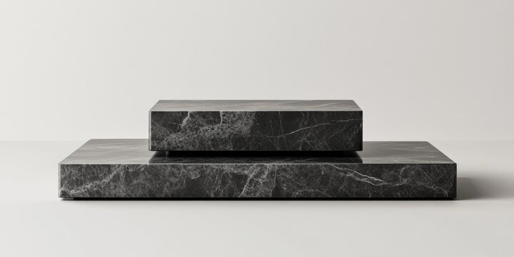 Granite podiums with black frames in a minimalist design on a white background ideal for luxury product displays measuring 25x11 inches.