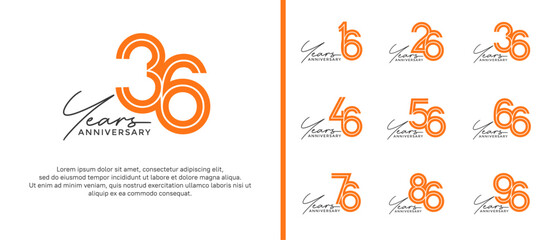 anniversary vector logo set, orange color with black handwriting can be use for celebration