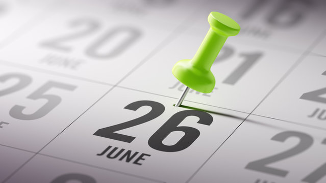 June 26 written on a calendar to remind you an important appoint