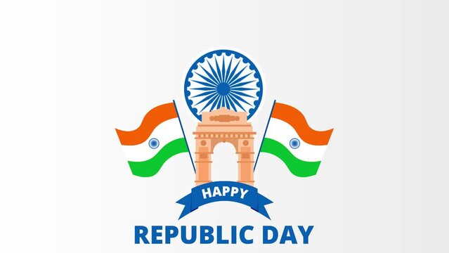 India Republic Day, entry into force of Constitution, colours orange white green blue flag, patriotism, sovereign, democratic republic, historical and cultural. banner, copy space, greeting card.