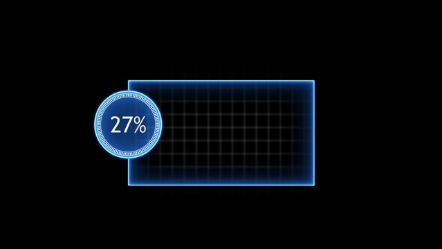 Neon blue loading bar from year 2120 to 2121 with 27 percent complete progress bar progress