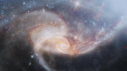 Seamless loop interstellar space travel universe to the Arp 273 that is 300 million light years away in the constellation Andromeda. 4K 3D Outer Space exploration concept. Elements furnished by NASA.