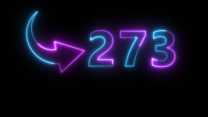 Neon business counting number illustration. Neon 273 number. Neon number with arrow icon.