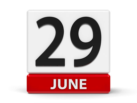 June 29th. June 29 wooden cube calendar with blur objects on background.
