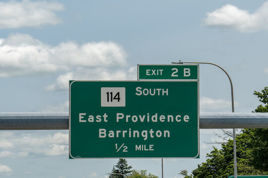 exit 2B sign on I-195 for RI-114 South to East Providence and Barrington, Rhode Island
