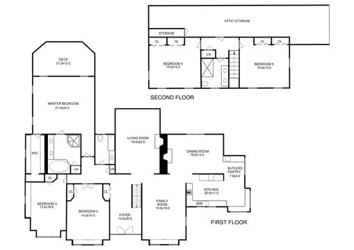 2d floor plan. Black&white floor plan.