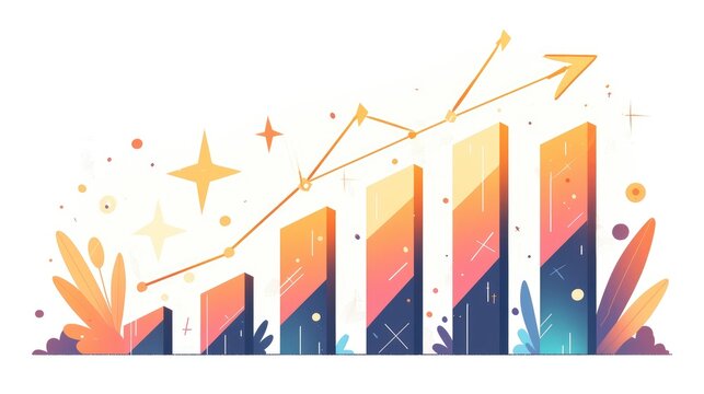 Elevate your design with a dynamic comic style bar graph icon that is bursting with growth featuring an arrow 2d in a lively cartoon illustration