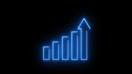 Glowing neon line Financial growth increase icon isolated on black background. Arrow graph going up. Glowing graph on a black background.
