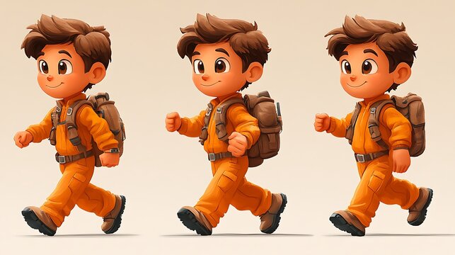 kids Cartoon Boy Character Design Set or animation video – Front, Side, and Back View Vector Illustration