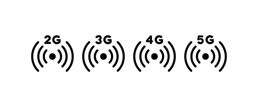 Wireless signal icon set. 2g 3g 4g 5g mobile communication technology. Vector on isolated white background. EPS 10