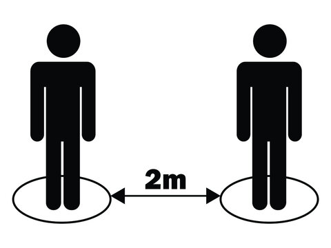 Social Distancing 2m Two Meters Stick Figure. Black Illustration Isolated on a White Background. EPS Vector